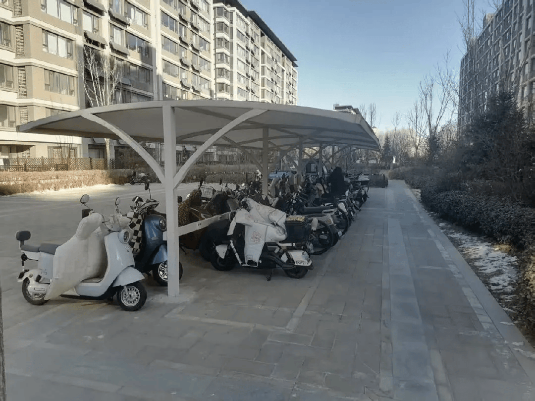 利通区朔方社区光耀府小区规划非机动车停车位并安装非机动车车棚,切实改善小区环境,提升居民幸福感。