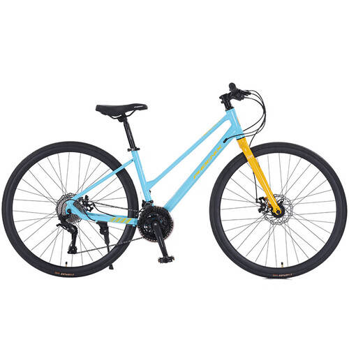 另一款公路自行车则通过高性能的油压碟刹系统,确保每一次刹车都更为安心。这种设计能有效提升骑行安全,尤其是在复杂的城市环境中,骑行者能够更加自信地掌控骑行节奏。