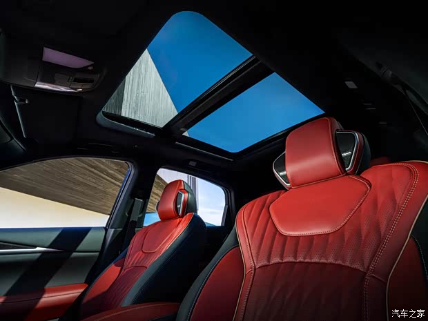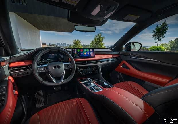 内饰方面,黑红的配色进一步强化了运动属性,大面积的皮质包裹增加了豪华感,中控台配备小巧精致的12.3英寸悬浮式中控屏,支持谷歌应用系统,另外,新车还提供12.3英寸的仪表屏和抬头显示系统,中控台尽可能保留了物理按键,同时车内也设置了无线充电面板。前排的两个座椅均提供了头枕音响,全车20扬声器,座椅还提供加热、通风和按摩功能,整体采用5座布局。
